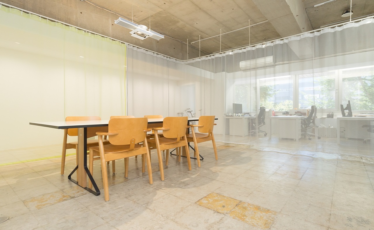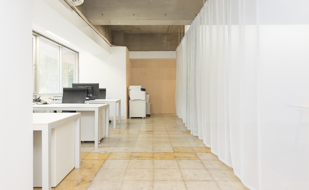 また、以前はデザインオフィスに入居されていたので、かなりプレッシャーがありました。今回ご紹介できた物件は倉庫に付随する事務所物件で、テナント様のデザイン力とイーソーコ総合研究所の工事サポートにより「デザイン事務所らしいクリエイティブな空間」が出来上がりました。限られたコストと使い勝手の調整を図りながら、カーテンを壁としてデスク・打ち合わせ・工房を仕切り、3つのスペースをつくりました。テナント様に大変ご満足いただくことができました。オーナー様にも新たなきれいな空間ができ物件価値が上がったと喜んでいただきました。